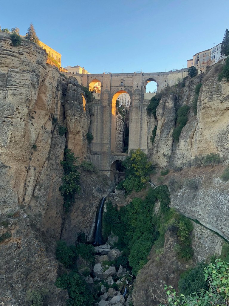 Ronda liegt ebenfalls auf einem Hügel. Die Stadt wird durch eine ca. 100m tiefe Schlucht getrennt, über welche die bekannte Brücke «Puente Nuevo» geht. Unsere Zeit in Ronda haben wir jedoch grösstenteils mit dem Geniessen von Tapas und Tinto de Verano verbracht 😀 .