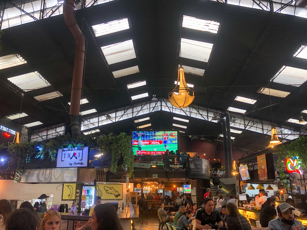 Abends sind wir dann jeweils ins Viertel „El Poblado“ gefahren, welches voll ist mit coolen Restaurants und Bars, aus denen jeweils ohrenbetäubende Musik dröhnte. Eines Abends haben wir uns dann noch eine Flasche Aguardiente gegönnt (der lokale Zuckerrohrschnaps mit Anis), der in Kolumbien shotweise getrunken wird. Weil wir ihn alle nicht wirklich mochten, aber eine ganze Flasche bestellt hatten, mussten wir das dann mit einem UNO-Trinkspiel lösen. Da ich im Uno oft die schlechten Karten zog, ging fast die Hälfte des Aguardientes auf mein Konto. (huere het sie schlächti Charte gha)