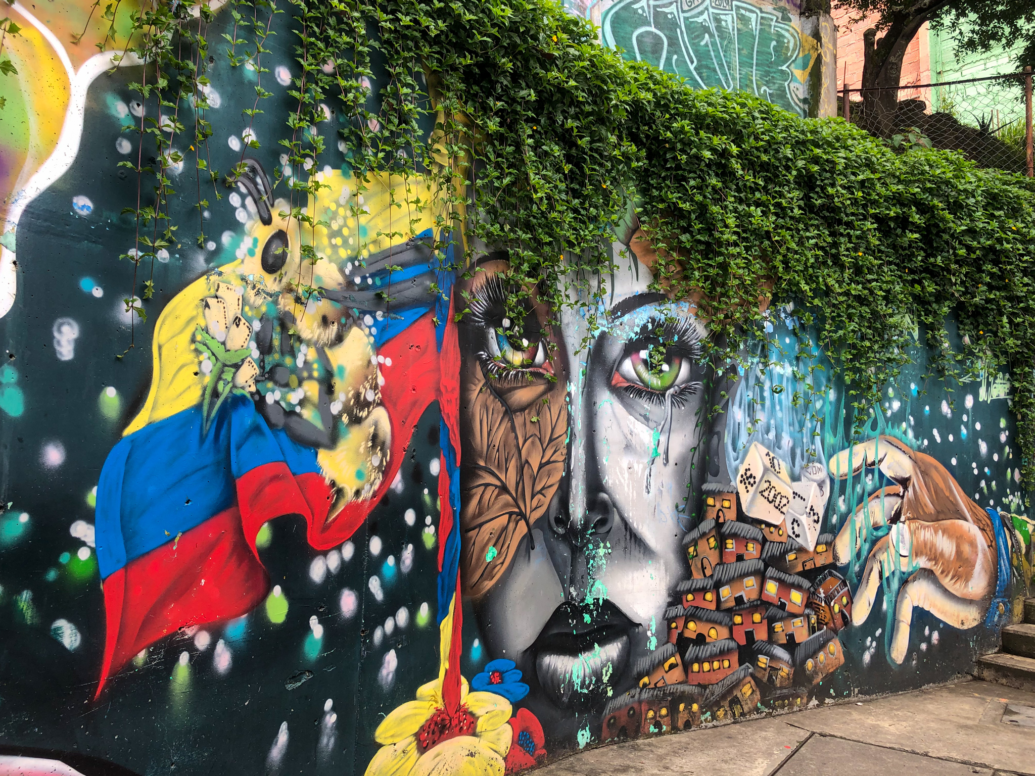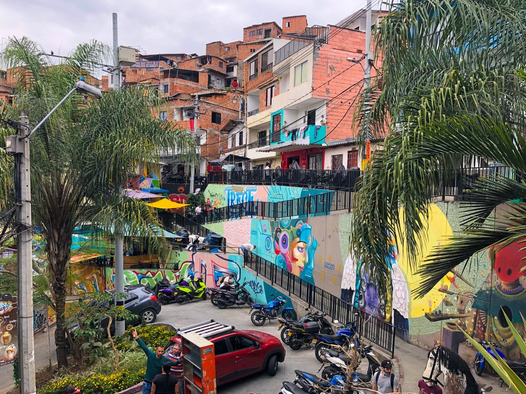 An unserem letzten Tag in Medellin schauten wir uns die Comuna 13 an, die heute bekannt ist für ihre Strassenkunst und Graffitis. Lange (also bis weit nach 2000) war die Comuna 13 ein regelrechtes Kriegsgebiet. Zuerst terrorisierte das Medellin Kartell das Viertel, gefolgt von Guerillas und Paramilitärs, die sich einen Gebietskampf lieferten.