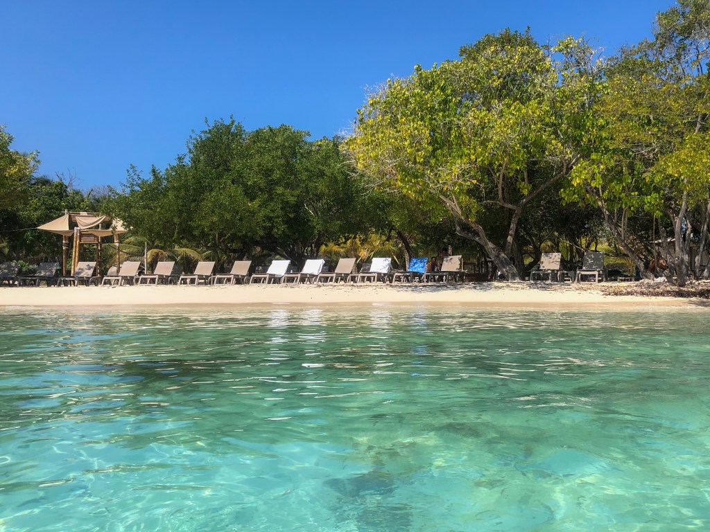 Am Folgetag durchquerten wir die Insel, auf der man entweder zu Fuss oder mit dem Velo vorankommt, um einen Privatstrand namens „Gente de Mar“ am anderen Ende der Insel aufzusuchen. Um dort einen Liegestuhl für einen Tag zu erhalten, muss man pro Person für etwas mehr als 10 Fr. konsumieren, was absolut kein Problem war. Und der Strand war ein absoluter Traum, anders kann man es nicht ausdrücken.