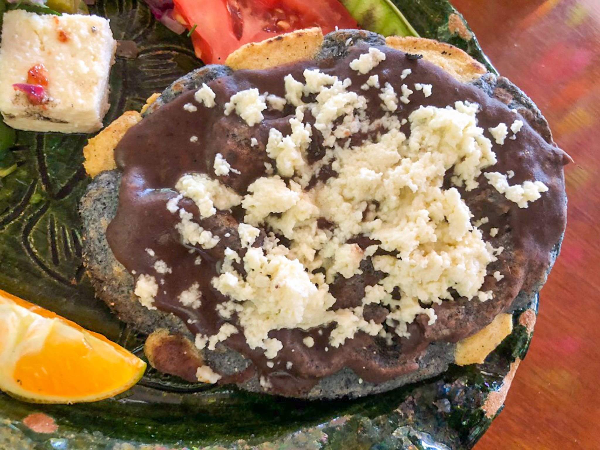 Als alles vorbereitet war, wurden uns die verschiedenen Gänge serviert (Tostadas, Memelas, Tetelas, Mole Negro, Mole Verde und zuletzt ein kleines Dessert). Die Speisen waren unglaublich lecker, jedoch muss man an dieser Stelle schon erwähnen, dass viele der Speisen, die eine Tortilla enthalten, relativ ähnlich sind. Das heisst, die Form ist vielleicht anders, aber die Zutaten sind fast dieselben. Dennoch hat uns der Kochkurs sehr gefallen und uns noch einen besseren Eindruck der lokalen Kultur und Küche verschafft.