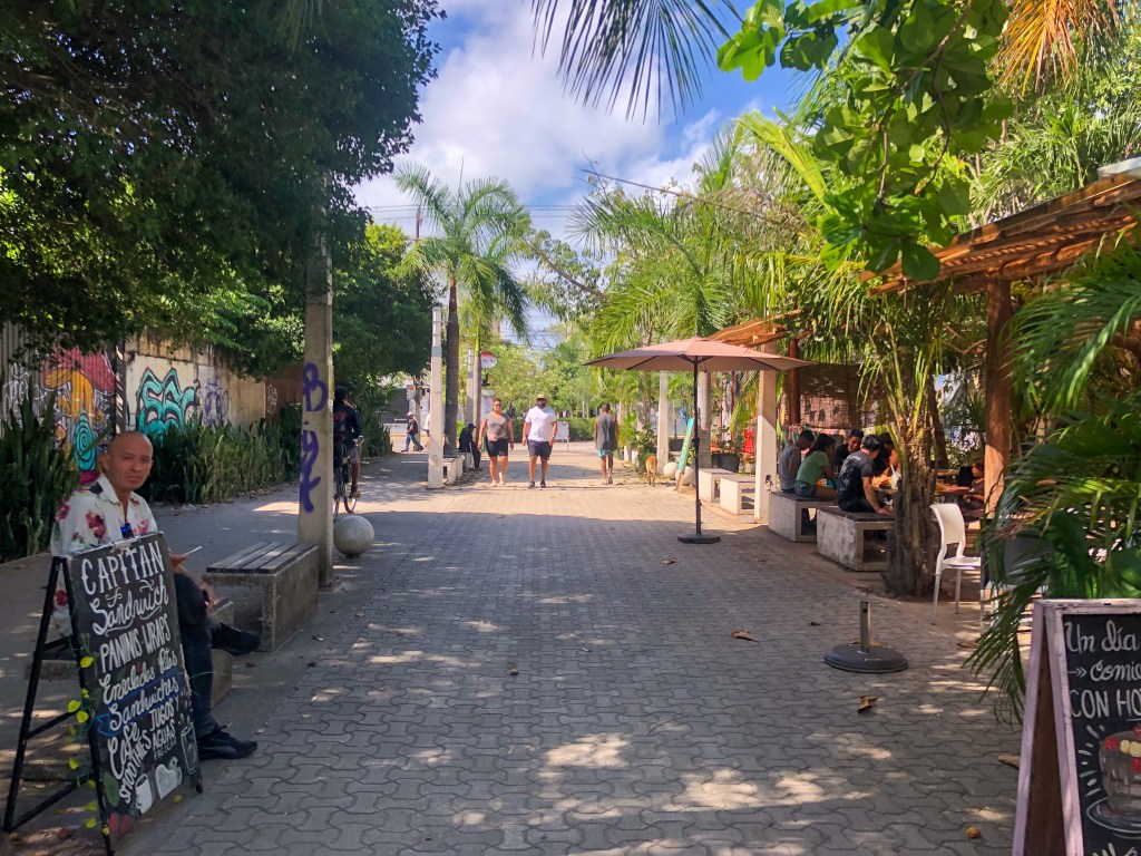Viel gemacht, ausser am Strand zu liegen, zu essen und in der belebten Promenade von Playa del Carmen zu flanieren, haben wir ehrlichgesagt nicht. Der Strand war in Ordnung, jedoch aufgrund der Saison voller Seegras. Und obwohl wir den Massentourismus nach dieser Zeit in Mexiko langsam gesehen haben, war die lebhafte Promenade dennoch recht unterhaltsam, bot viele Restaurants, Kaffees und Lädeli. Nach 3 Tagen zog es uns weiter ins Inland von Mexiko.