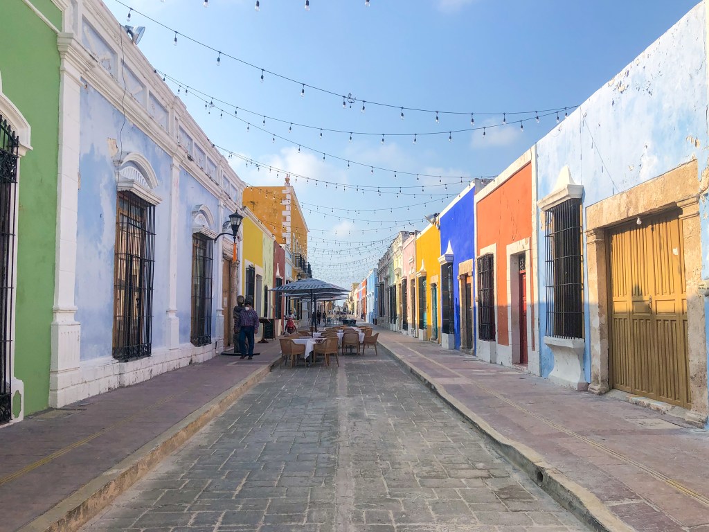 Am nächsten Tag erkundeten wir die Stadt zu Fuss und waren echt begeistert von all den schönen, bunten Häuschen. Bei brütender Hitze schauten wir uns die Innenstadt an, gefolgt von dem Markt Lucas de Galvéz. Auf diesem Markt konnte man alles ergattern, was man sich vorstellen kann. Über Gemüse (und weiteren wohlriechenden Lebensmitteln) bis hin zu Schmuck und Schuhe. Voller Neugier begutachteten wir alles Neue und schauten belustigt einem volltättowierten Amigo zu, wie er schwitzend und weinend eine Habanero-Chili verspeist hat (aus welchen Gründen auch immer). Abends liefen wir noch dem Paseo de Montejo entlang, ein Boulevard gesäumt von alten Villen und Museen. Leider war damit unsere Zeit in Mérida schon zu Ende.