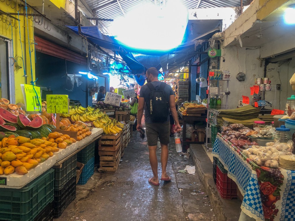 Von dort aus fuhren wir zurück nach Roma Norte, wo ich mir unbedingt nochmals (vegane) Tacos gönnen wollte. Zudem hat sich Kevin am lokalen Markt noch die schärfste aller Saucen ergattert, um auch zuhause sein Spice-Niveau halten zu können (Nachträgliche Ergänzung: Die Sauce war leider nicht allzu scharf).