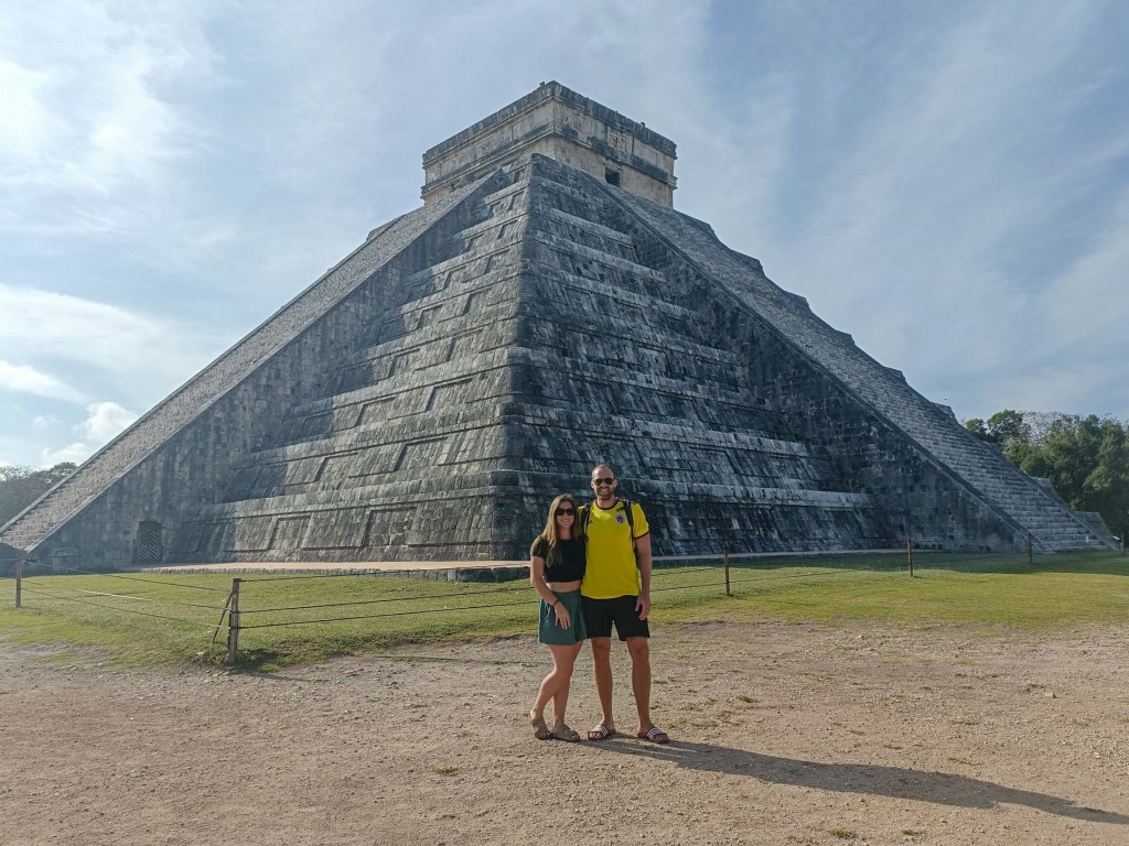 Am nächsten Morgen liefen wir früh zur Station der Colectivos (Sammeltaxi, das erst losfährt, wenn es voll ist). Dieses sollte uns nämlich pünktlich zur Öffnung um 8 Uhr morgens nach Chichén Itzá bringen. Es hat geheissen, dass dann noch nicht viele Leute vor Ort seien und man die Ruinen geniessen könne, bevor die ganzen Massen an Touristen aus ihren Hotelbunkern in Cancún anreisten. Schon beim Eingang waren wir etwas skeptisch, da doch schon einige Leute vor Ort waren. Drinnen war es dann auch nicht anders. Aber was solls. Verglichen mit den Mengen an Touristen, die später noch kamen, war es tatsächlich fast noch idyllisch.