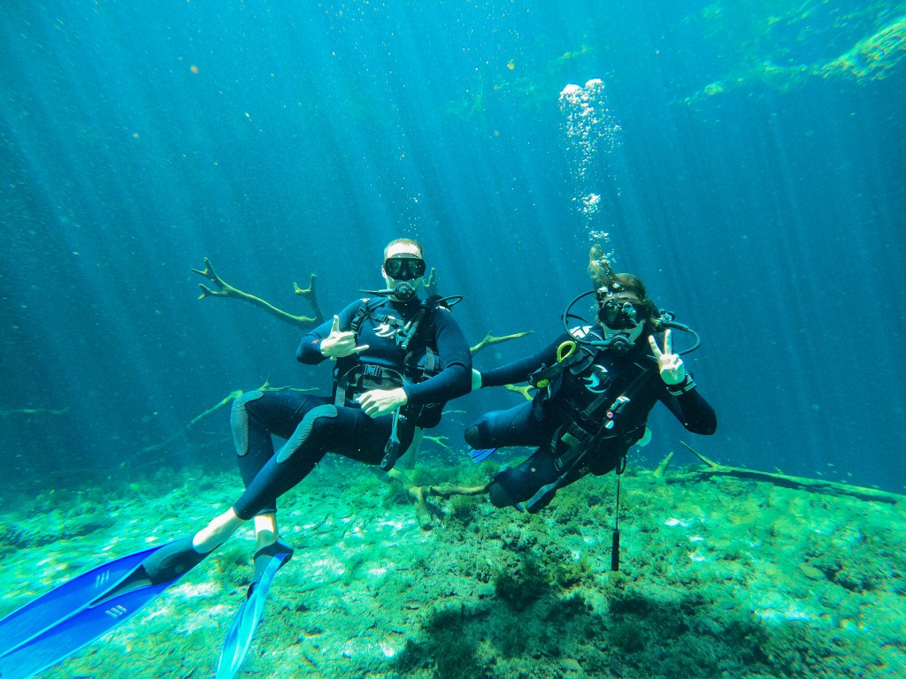Die zweite Cenote hiess «Aktun Ha» (auch als Car Wash bekannt) und ist viel weniger tief als die erste und beheimatet wunderschöne Unterwasserlilien und einige Fische. Zudem konnten wir in Teile einer Höhle herabtauchen und die verschiedenen Steinformationen begutachten. Auch wenn die erste Cenote sehr aussergewöhnlich war, hat es mir mehr Spass bereitet, in der zweiten zu tauchen.