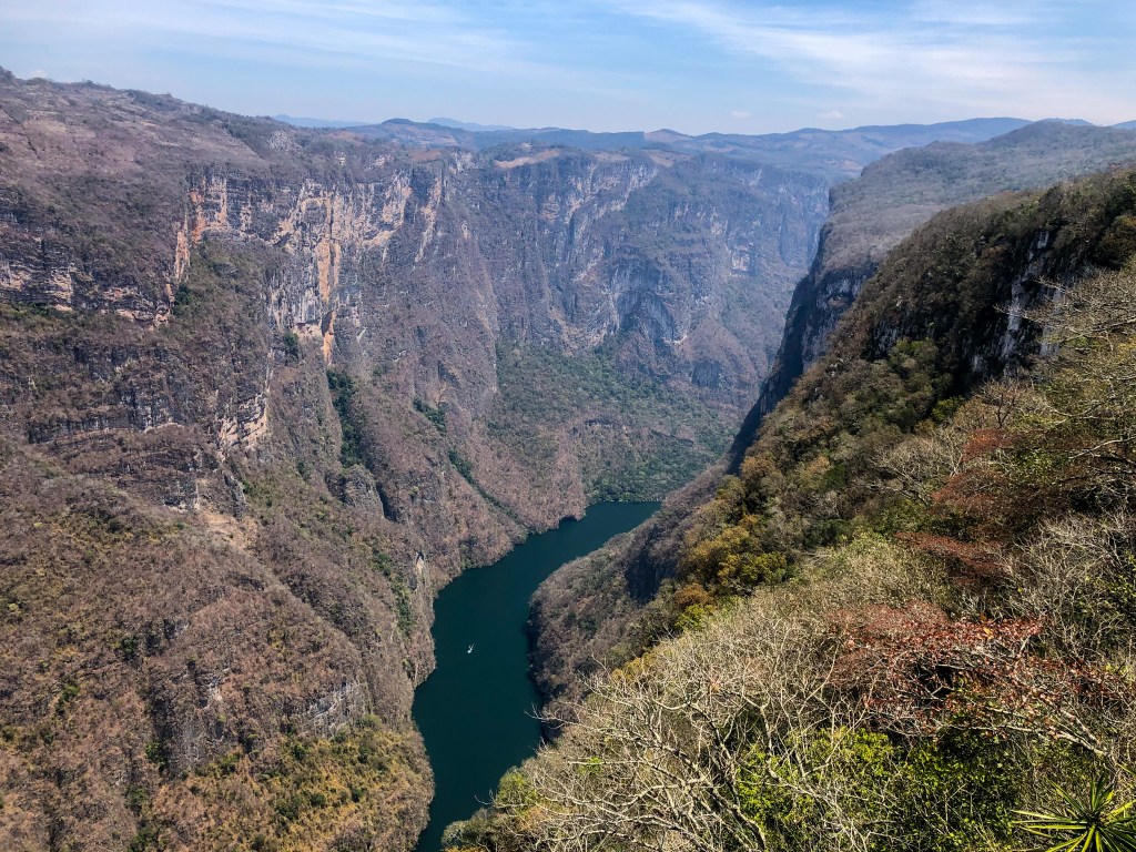 Am ersten Tag wollten wir den nahegelegenen Cañón del Sumidero besuchen. Der Anfang verlief etwas holprig, da unser Tour-Amigo uns vergessen hatte. Etwa eine Stunde später konnten wir uns dann doch noch einer Tour anschliessen. In einem halsbrecherischen Tempo beförderte uns der Fahrer via Tuxla Gutierrez zu den Aussichtspunkten des Cañóns del Sumidero. Denn dieser Canyon besitzt bis zu 1’000 Meter hoch aufragende Felswände und dementsprechend ist auch die Aussicht gewaltig.