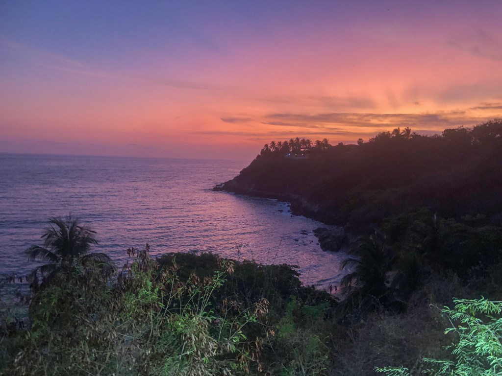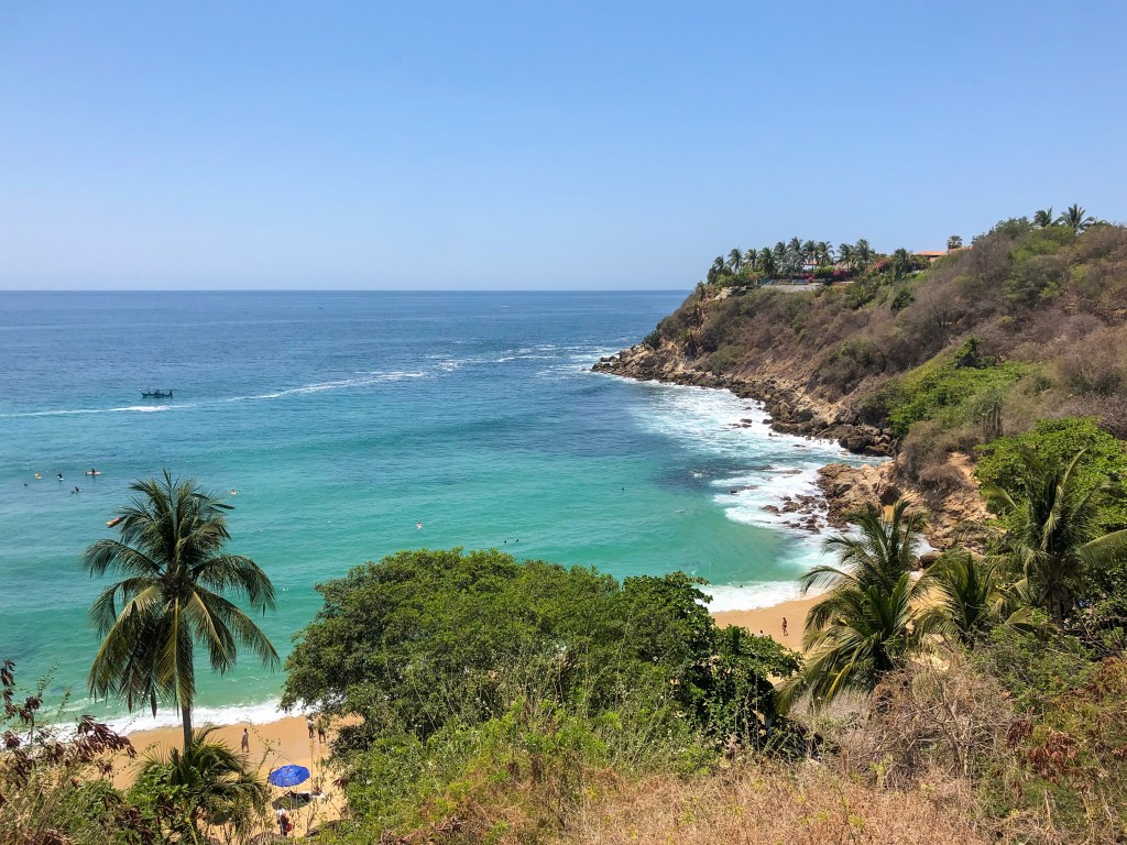 Viel gemacht haben wir in den drei Tagen nicht, ausser dass wir sehr gute Tacos und Burritos gegessen haben und den Tag durch jeweils die Bucht um den «Playa Carrizalillo» aufgesucht haben. Wenn man sich dort in die Sonne gelegt hat, war man wegen der Hitze nach 5 Minuten schon klitschnass, ohne dass man im Wasser war. Zumindest Kevin hat wie eine Ölsardine ausgesehen 😅.