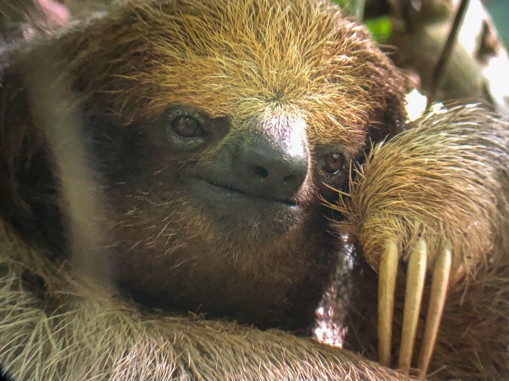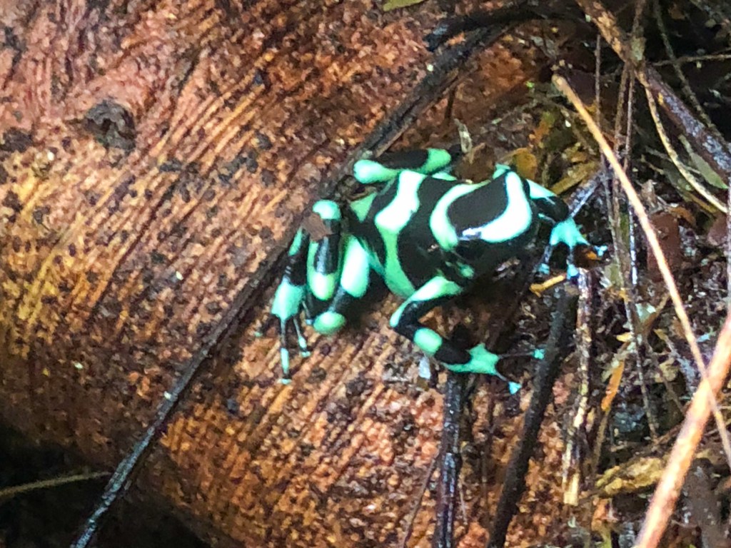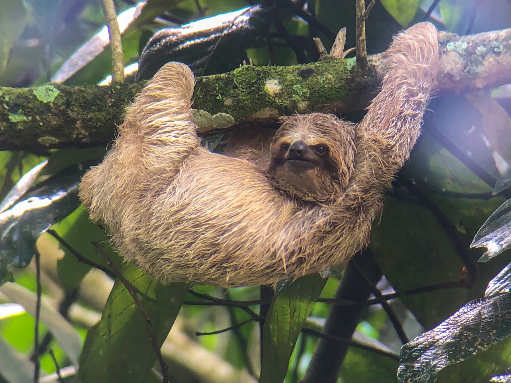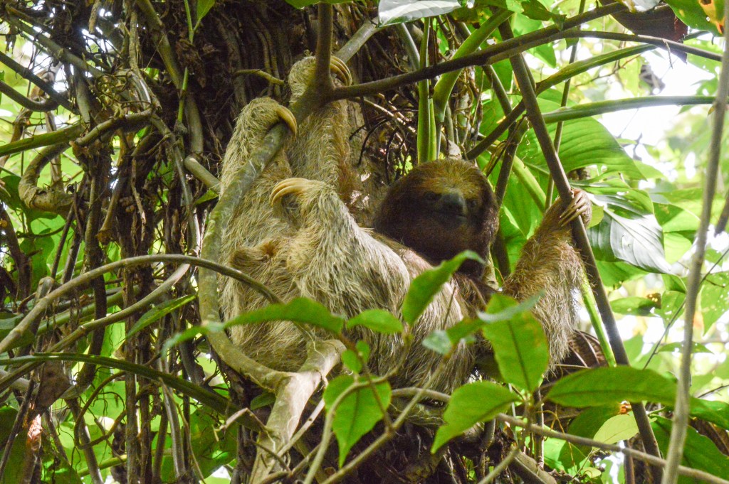 Zuerst sind wir zu einem Park gefahren, wo man viele Faultiere sehen soll. Bei einem 1-2 stündigen Spaziergang haben wir in der Tat einige Faultiere entdeckt, darunter auch ein Junges. Nebst dem sichteten wir viele Vögel und bunte, giftige Frösche.