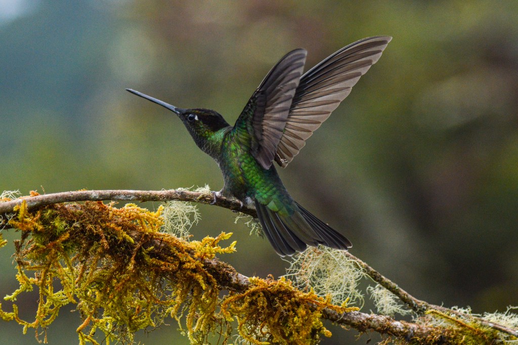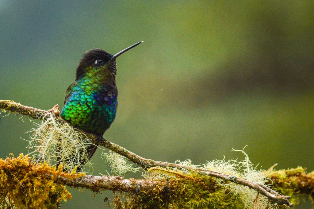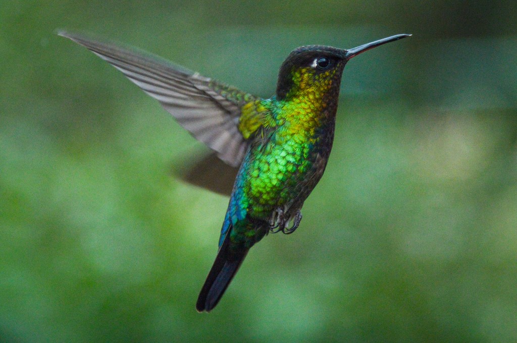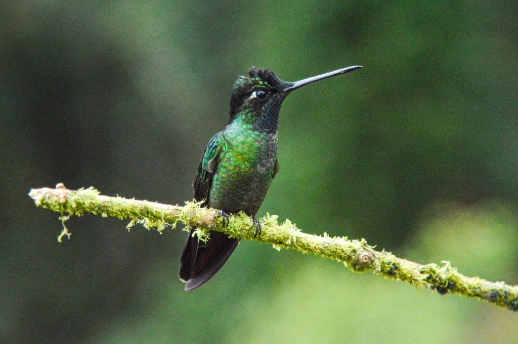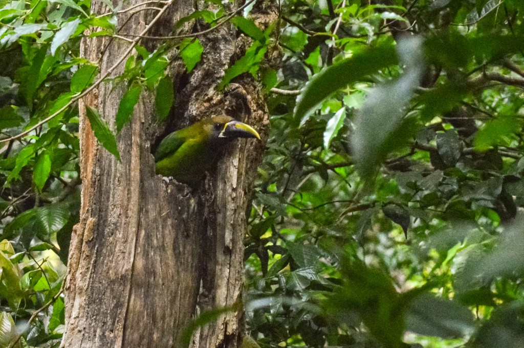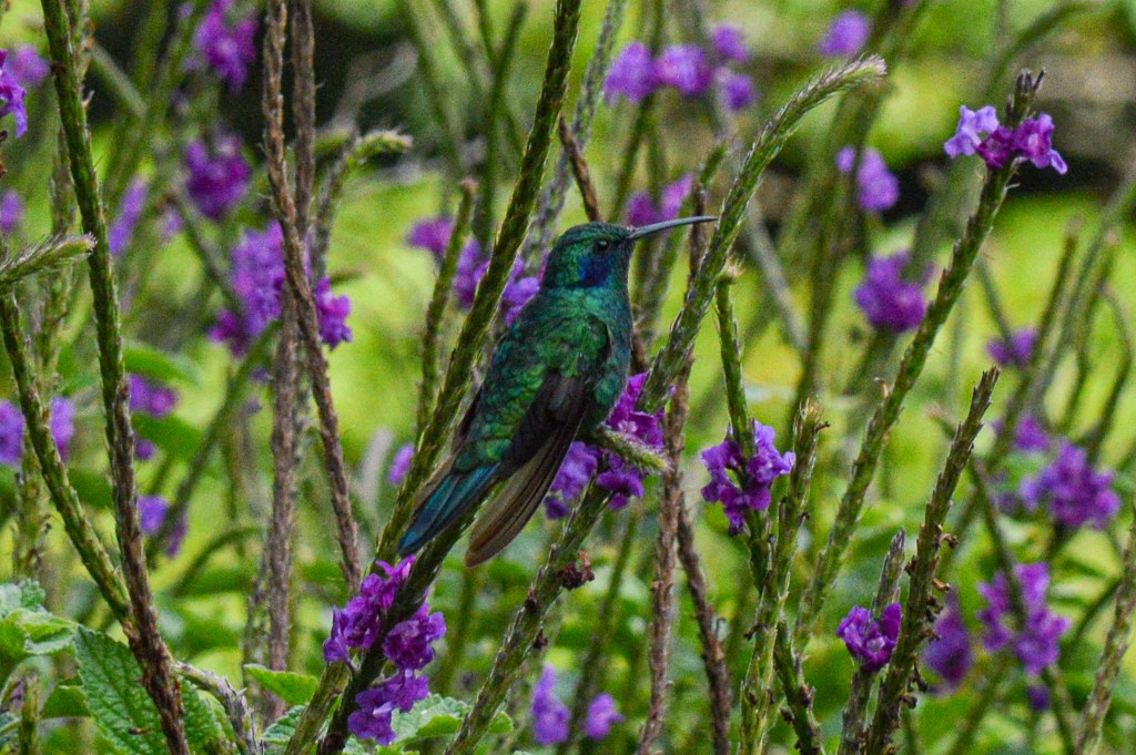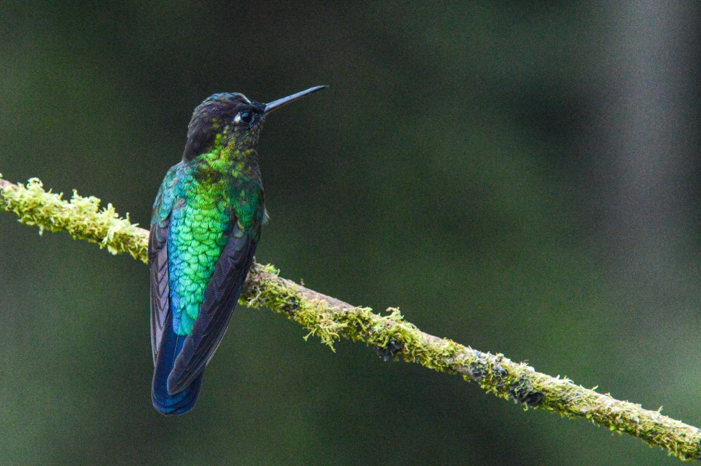 Da wir nicht mehr denselben Rückweg nach San José einschlagen wollten, machten wir einen Abstecher via den Parque Nacional Los Quetzales, wo wir unsere letzte Nacht verbrachten. Da ich etwas unterschätzt habe, wie hoch in den Bergen dieser Park liegt, ist „kurz“ etwas Panik ausgebrochen, da sich Tauchen und Höhe nur schlecht vertragen. Aber nichts passiert. Also traten wir unsere Reise von Meereshöhe auf rund 2`700 M.ü.M. an. In diesem Nationalpark sollte man den berühmten, schönen Quetzal Vogel sehen. Die Chance diesen zu sehen, war morgens früh am Grössten. 5 Uhr morgens in Kombination mit dem hohen Preis schreckten uns aber ab und wir begnügten uns mit den herzigen Kolibris, gleich bei unserer Unterkunft.