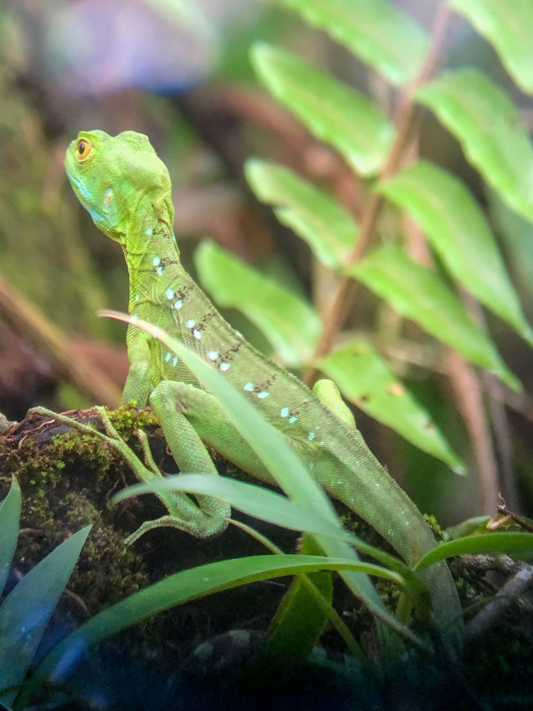 Monteverde liegt in den Bergen von Costa Rica und ist bekannt für seinen tropischen Wolkenwald. Da wir aber ziemlich in der trockensten Zeit vor Ort waren, waren die umliegenden Wälder nicht neblig und nass. Alles halb so schlimm. Unsere Unterkunft verfügte über einen riesengrossen Garten, wo immer wieder Tiere vorbei schauten. Das veranlasste Mami dazu, den halben Nachmittag auf der Veranda draussen zu verbringen und Tiere zu beobachten.