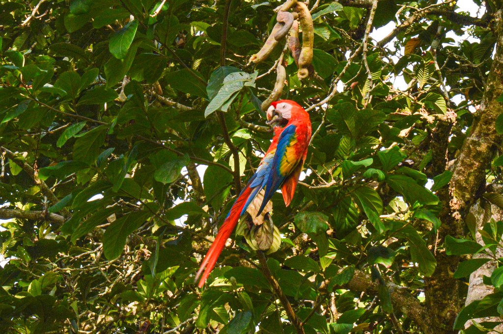 Diese ist übrigens nur bei Ebbe erreichbar. Auf dem Rückweg, direkt neben unserer Unterkunft, sahen wir noch unzählige rote Papageien, die Früchte auf den umliegenden Bäumen speisten.