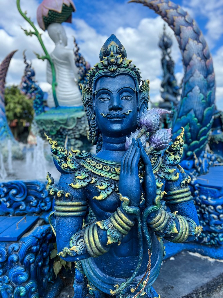 Also mieteten wir uns wie immer einen Roller und besuchten zuerst den blauen Tempel von Chiang Rai. Dieser ist relativ neu und wie es der Name schon erahnen lässt, komplett blau. Schön, wenn auch etwas kitschig.