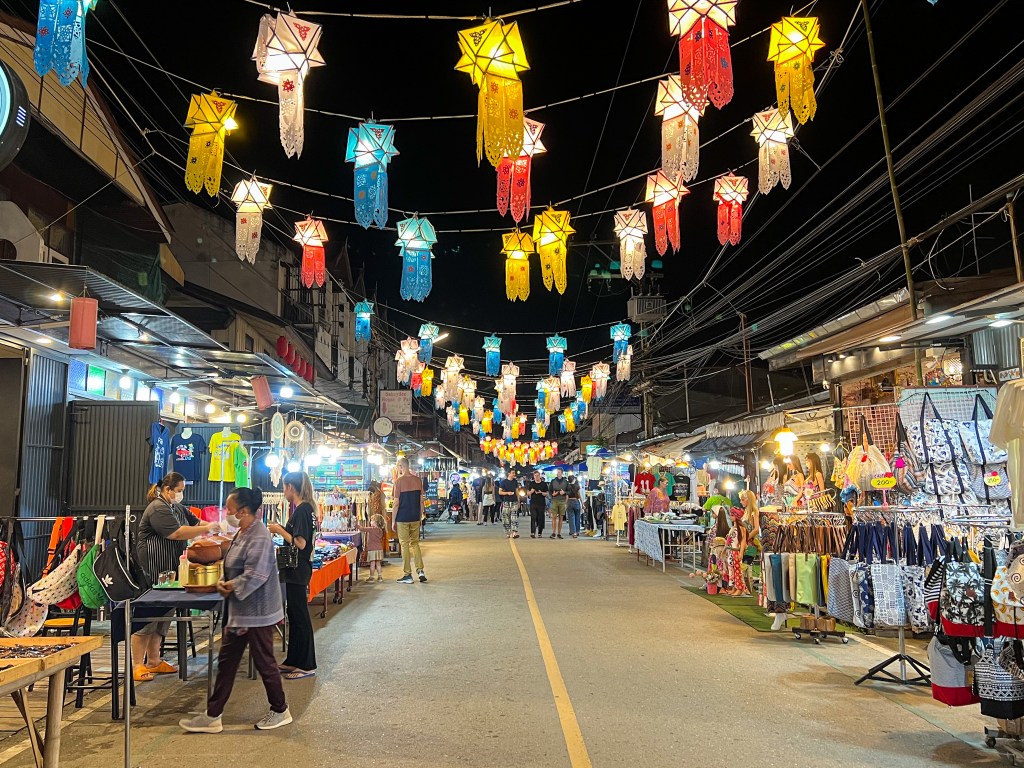 Am Abend genoss ich meine letzte Khao Soi Suppe und wir schlenderten nochmals durch den Nachtmarkt bevor der letzte Abend in unserem liebgewonnen Thailand leider schon vorbei war. Am nächsten Morgen setzten wir uns in den lokalen Bus in Richtung thai-laotische Grenze.