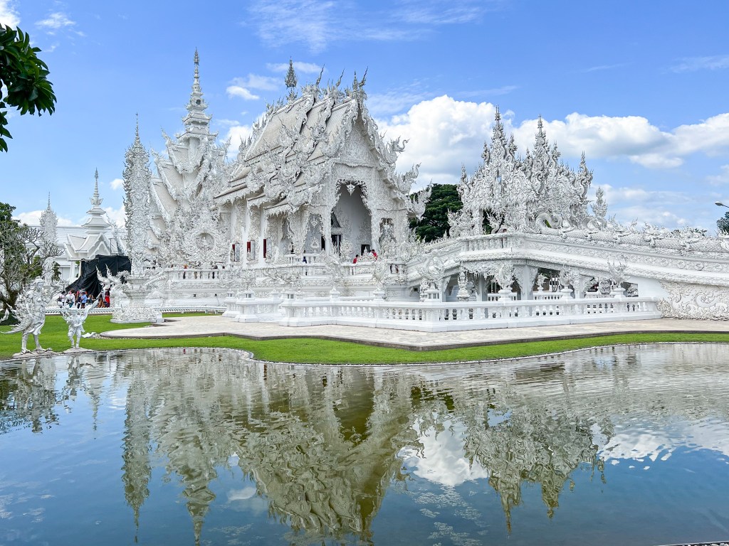 Danach dauerte es nochmals 20-30 Minuten Fahrt zum weissen Tempel. Auch dieser – komplett weiss und wunderschön bis ins letzte Detail. Und auch wenn Chiang Rai nichts Aussergewöhnliches ist, der Besuch des Tempels lohnt sich allemal.