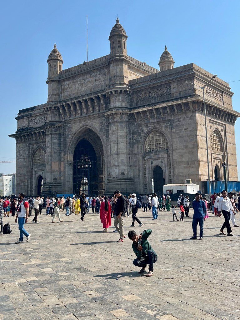 Am nächsten morgen, frisch ausgeschlafen, machten wir uns zu Fuss auf den Weg, um die nahegelegenen Sehenswürdigkeiten zu erkunden. Kaum aus dem Hotel gelangt, wurden uns (oder v.a. Kevin) von allen Seiten Touren, Anzüge oder sonstige Souvenirs angepriesen. Glücklicherweise war das nur in einer der Strassen so und hielt sich sonst in Grenzen. Nachdem wir uns mit einem Kaffee gestärkt hatten, suchten wir das Gateway of India und das danebenliegende Taj Mahal Palace Hotel auf, wohl die bekanntesten Sehenswürdigkeiten von Mumbai.