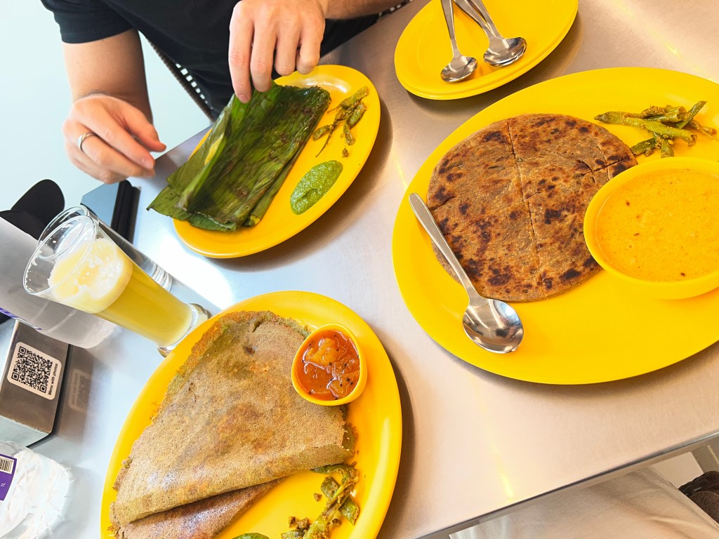 Nachdem wir unsere Kreise gezogen und Fotos geschossen hatten, zog es uns weiter in Richtung Zmittag, an einen Ort namens Swati Snacks. Dort probierten wir uns einmal quer durchs Menü und probierten lokale Gerichte, die mega lecker waren.