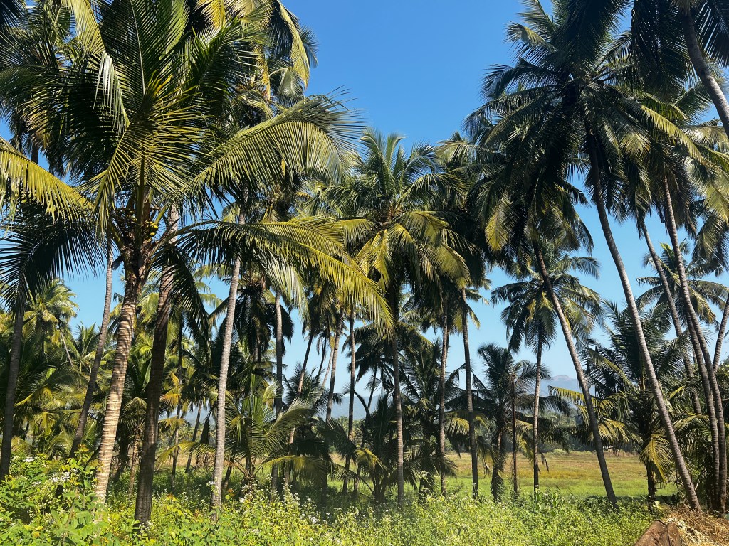 Von Mumbai aus schnappten wir den Flieger nach Goa, wo wir einige entspannte Tage in Palolem verbrachten. Vom Flughafen betrug die Fahrt rund 1,5 Stunden, wobei wir schon auf dem Weg Gefallen an den von Palmen gesäumten Strassen fanden. In Palolem angekommen, mussten wir uns erstmal stärken, bevor wir dann unser erstes Bier bei Sonnenuntergang am Strand genossen.