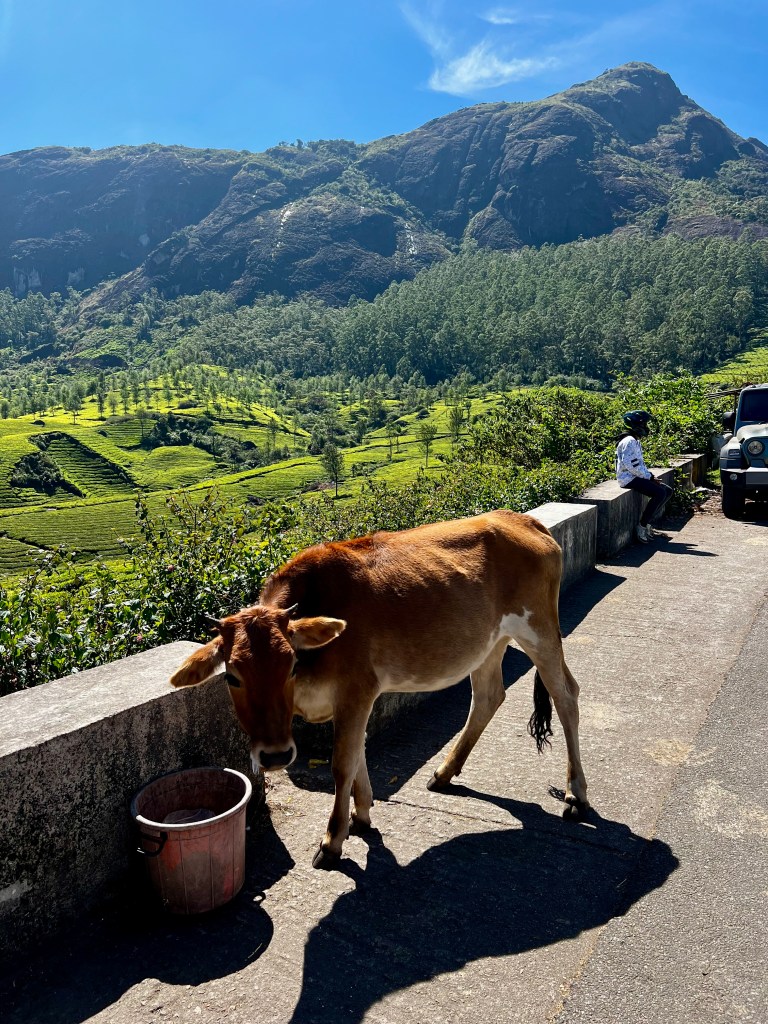 Beim Skyfall Viewpoint verpflegten wir uns mit Masala Chai, Kaffee und einem Gebäck für satte 30 Rappen. Auf dem Rückweg zum Töff hatte ich fast einen Zusammenstoss mit einer Kuh, worüber diese nicht so glücklich war und sich zum Angriff bereit machte.
