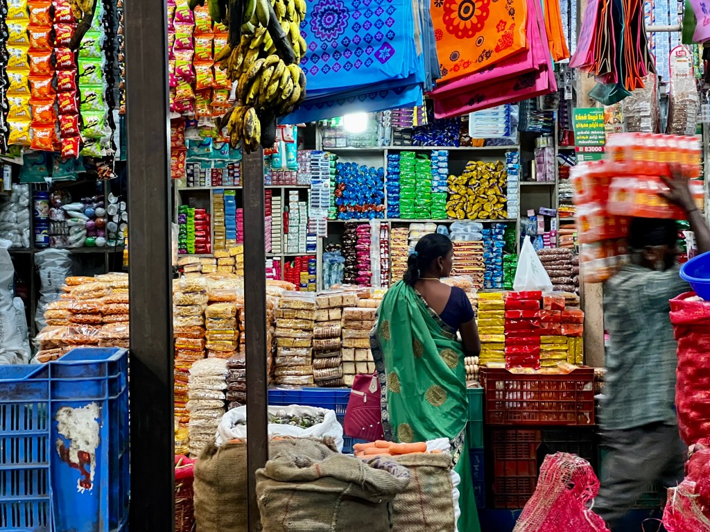 Auf dem Rückweg machten wir in Munnar Stadt halt, wo wir ein super lecker Biryani zu Mittag assen. Im Anschluss schlenderten wir durch den Markt, positiv überrascht darüber, dass sich niemand für uns interessierte. Nach dem Abendessen wurden wir noch Zeugen einer Tempelparade, begleitet von sehr lauter, indischer Technomusik, bunten Kostümen und zu unserem grossen Erstaunen auch von einem Elefanten.
