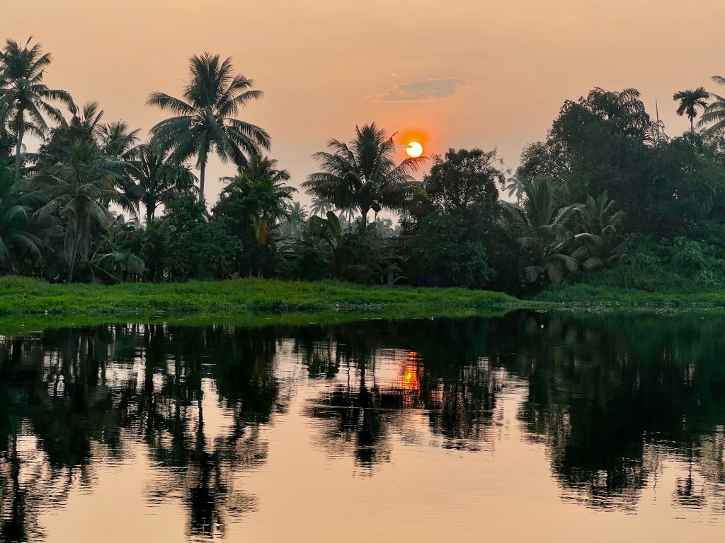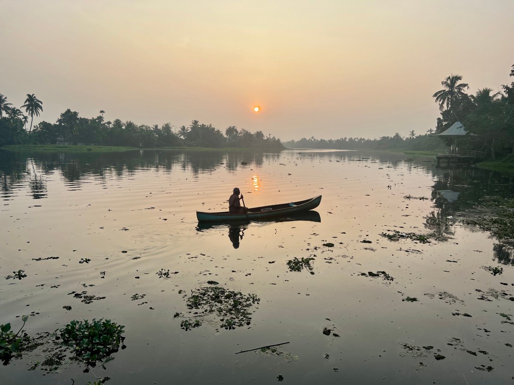 Kurz nach Sonnenuntergang ankerten wir und genossen ein keralesisches Znacht auf dem Boot. Die Nacht war zwar sehr ruhig, am morgen früh lief jedoch bereits wieder irgendwo laute Musik. Jäno, so habe ich zumindest den Sonnenaufgang mitbekommen. Nach dem Frühstück ging es leider schon wieder zurück zum Hafen.