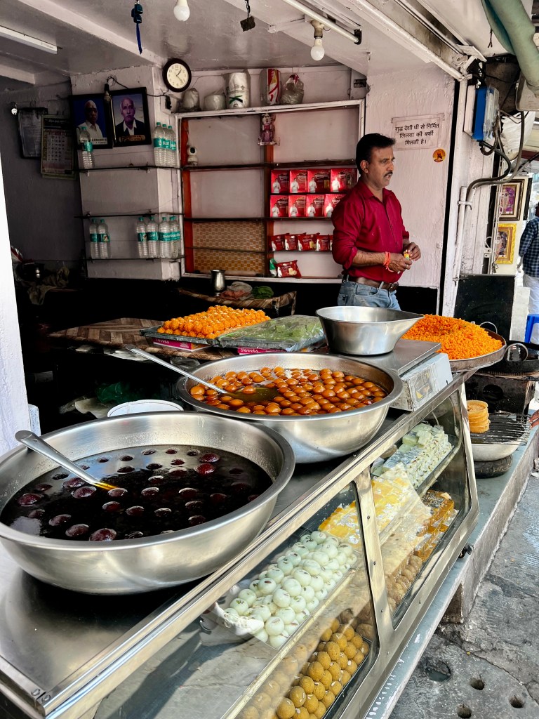 Danach probierten wir in dem Lokal „Street Food Suman Vilas Namkeen and Sweets“ einige leckere Spezialitäten der Region bevor wir dann zum Meherangarh Fort hinaufstiegen, welches auf dem Hügel der Stadt ragt.