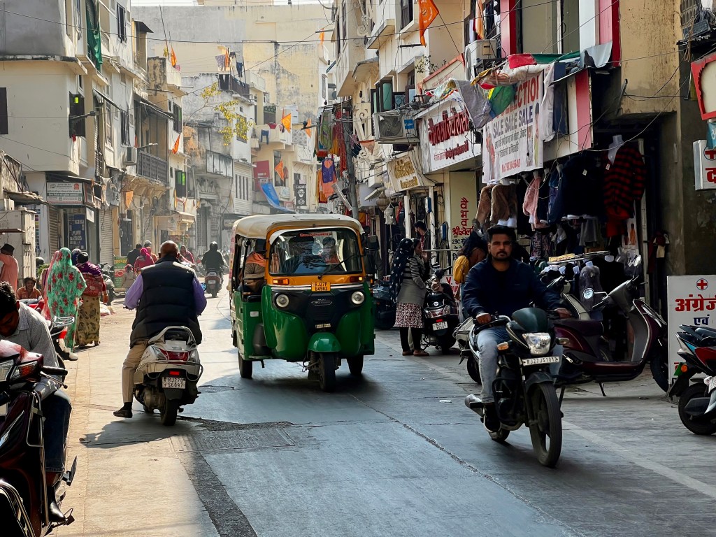Am nächsten Morgen wachten wir mit einer wunderschönen Aussicht auf den Lake Pichola auf. Nachdem wir gefrühstückt und ein Gym aufgesucht hatten, schlenderten wir zurück in Richtung unserer Unterkunft und beobachteten das alltägliche Treiben in den lokalen Geschäften und Restaurants.