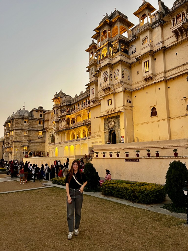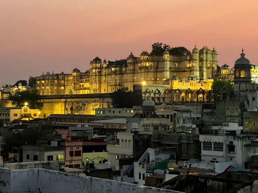 In zügigem Tempo brachte uns unser Uber Fahrer ins Zentrum von Udaipur, wobei er nur knapp eine Kuh verfehlte, welche die Autobahn überquerte. Geht’s noch klischeehafter? 😅 Unser Taxi durfte im Gegensatz zu Motorrädern und Tuktuks nicht ganz in die Altstadt von Udaipur fahren und so mussten wir die letzten Meter noch laufen, was mich völlig überreizte, aufgrund des Gehupes und der lauten Musik überall. Auch in unserem Hotelzimmer war es nur bedingt ruhiger, da es in Udaipur von Rooftop Restaurants wimmelt, welche alle ihre eigene, laute Musik laufen liessen. Zum Glück nahm das am späteren Abend ein Ende.