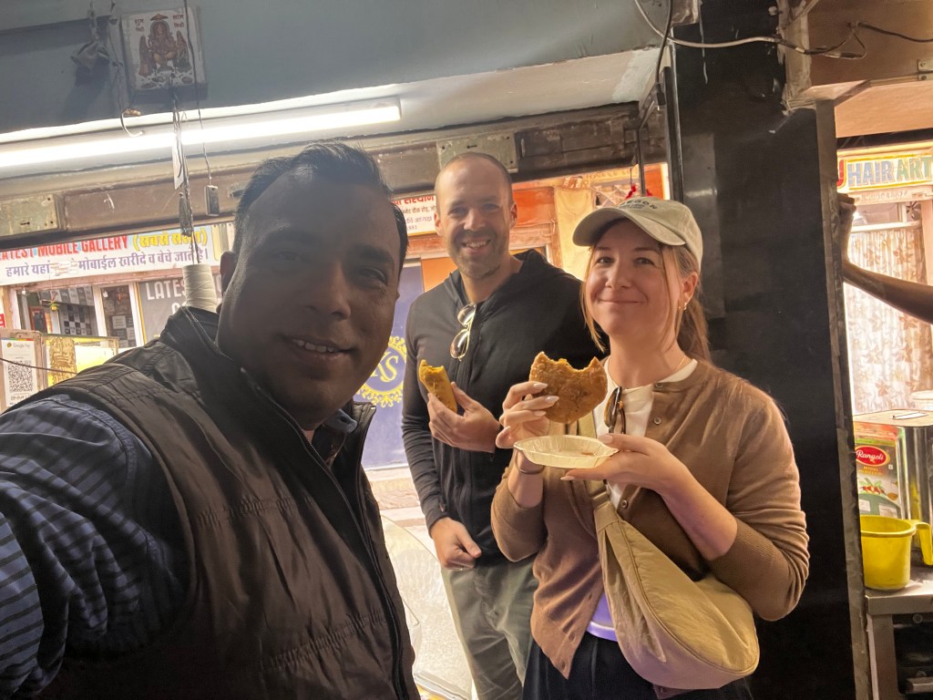 Am Nachmittag wollten wir dem See entlang laufen und dann auf eine Sonnenuntergangs-Bootstour gehen. Es hat sich dann herausgestellt, dass wir 1. nicht am See entlang laufen können und 2. es uns viel zu viele Leute hatte, welche am Bootspier angestanden sind. So haben wir uns am Strassenrand „Maggi“ (Nudeln) und einen Masala Chai bestellt und beobachtet, wie die indischen Touristen auf bunt geschmückten Kamelen durchgeritten sind😬.