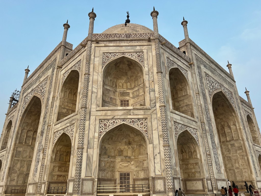 Kaum drin erblickten wir das Taj Mahal in seiner vollen Pracht. Und der Anblick des grossen, marmorweissen Gebäudes hat uns echt beeindruckt und unsere hohen Erwartungen nochmals übertroffen.